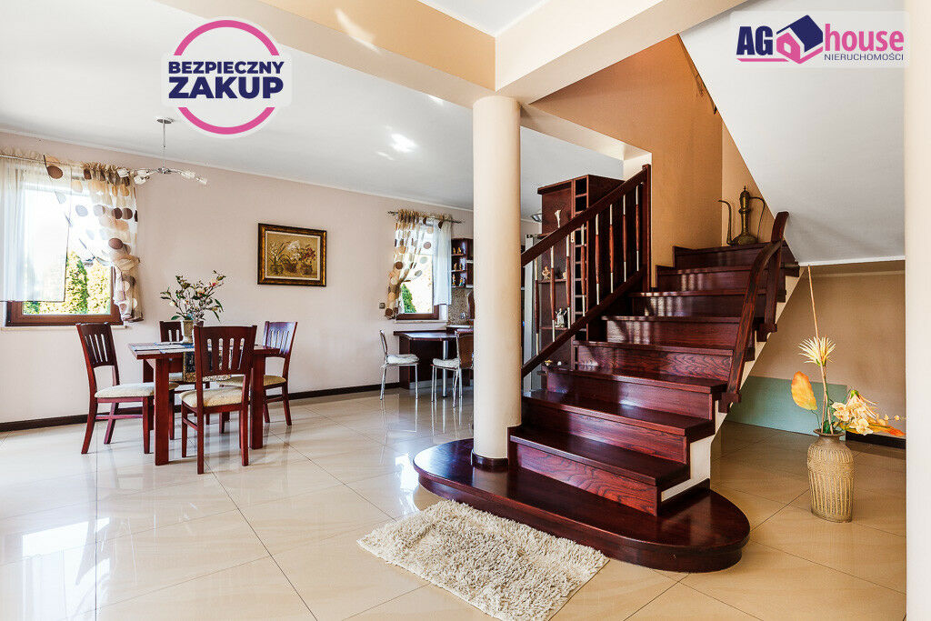 Na sprzedaż komfortowy dom o powierzchni całkowitej 336,20 m² (użytkowa 188 m²), wybudowany w 2010 roku na dużej, ogrodzonej działce o powierzchni 1445 m². Dodatkowo do posesji przynależy 132 m² prywatnej drogi dojazdowej.