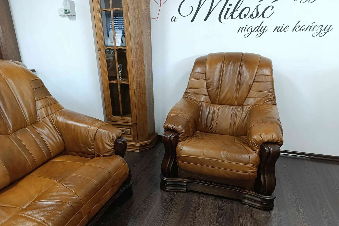 Komplet PATRYCJA ! Skóra + drewno dębowe! Od zaraz