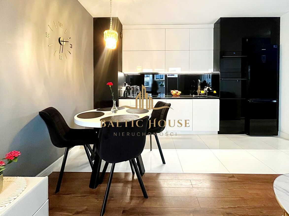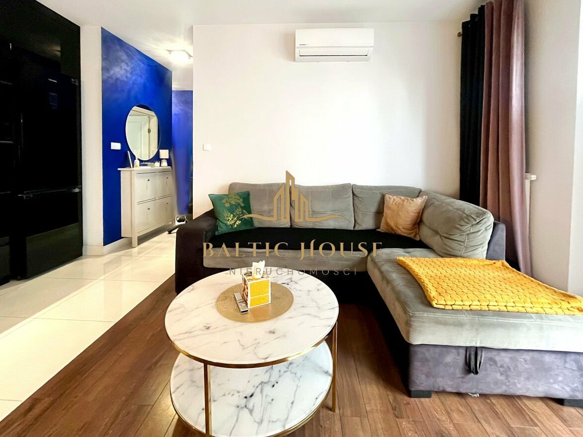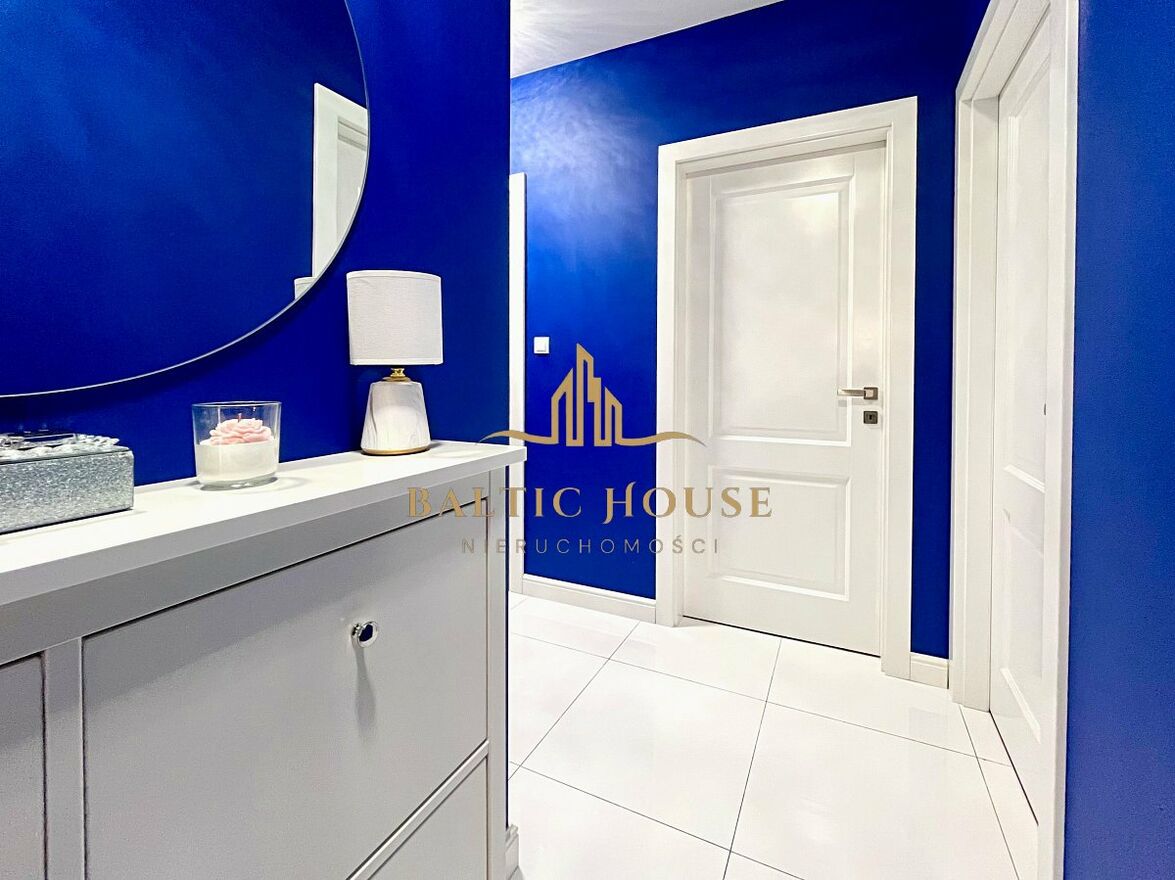 Mieszkanie położone jest w spokojnej i kameralnej dzielnicy Redy, w sąsiedztwie Aquaparku, co czyni je idealnym miejscem dla osób ceniących sobie ciszę oraz szybki dostęp do miejskiej infrastruktury. W okolicy znajdują się sklepy, place zabaw, punkty usługowe, restauracje, a także przystanki komunikacji miejskiej i stacja SKM, co zapewnia wygodne połączenie z centrum Redy, Rumi oraz całym Trójmiastem.
